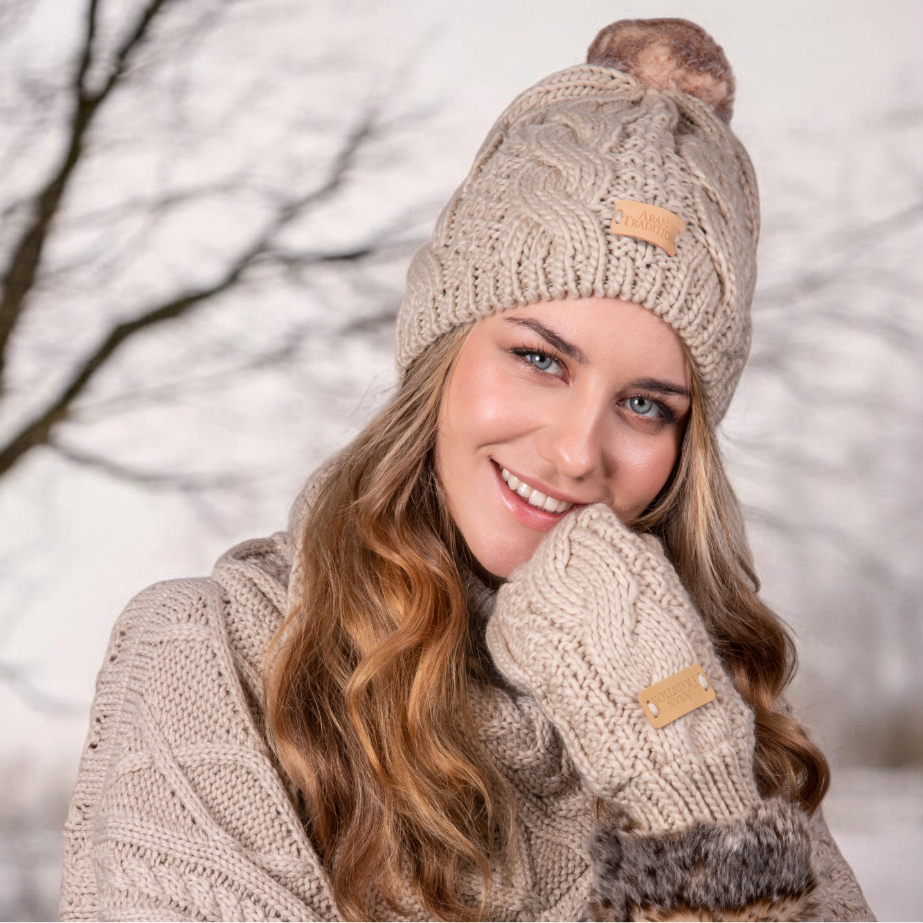 Elevate your winter style with our Aran Cable Tammy Hat from Aran Traditions. Crafted with a chunky cable knit pattern in a soft and cozy 3GG knit, this hat exudes warmth and sophistication. The natural-coloured faux fur pom pom adds a touch of elegance to the overall design.
