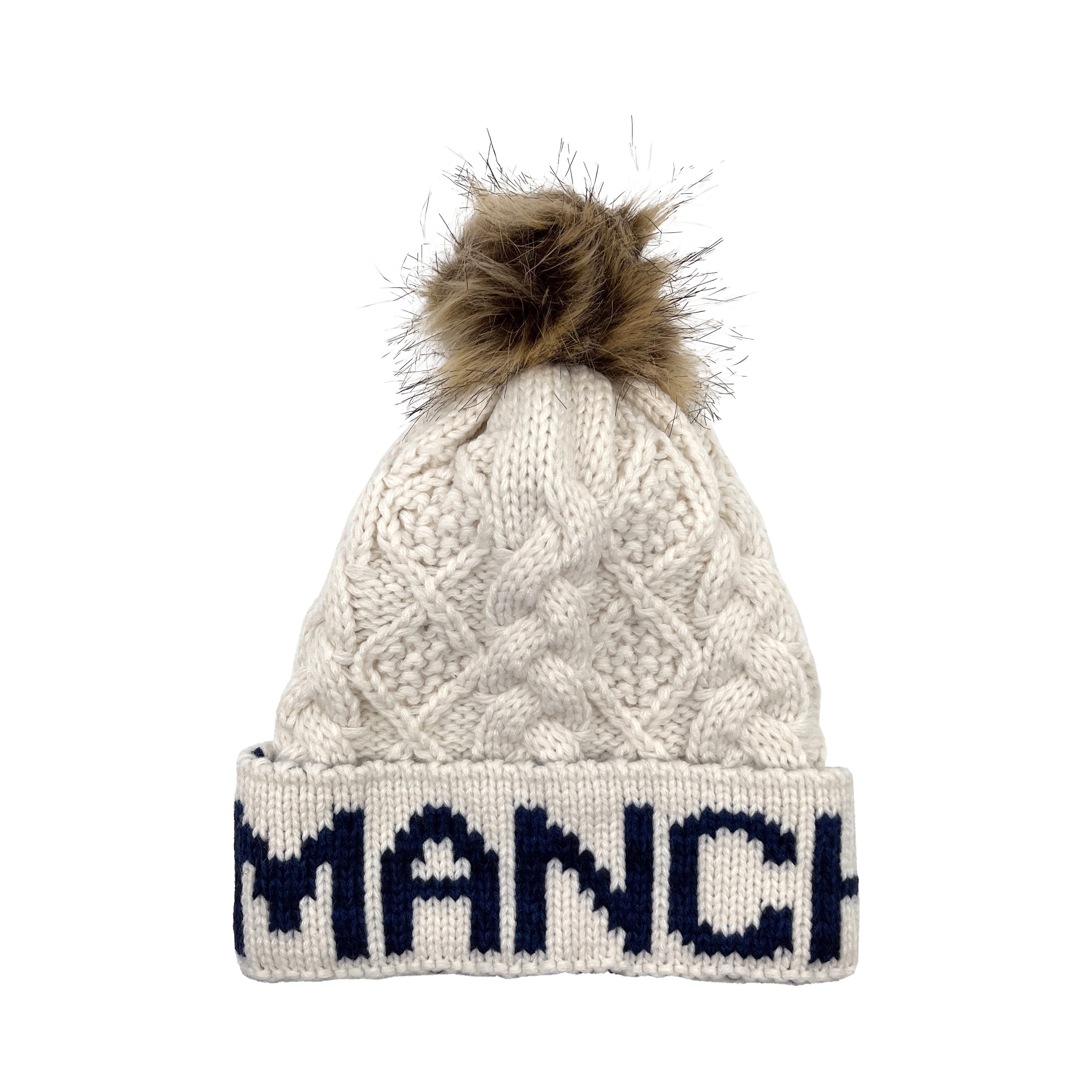 Whether you're strolling through the city or embracing the great outdoors, the Aran Diamond Cable Manchester Pom Pom Hat is the must-have accessory to keep you warm and stylish. Embrace your national pride with this timeless winter essential and elevate your winter wardrobe with a touch of sophistication.