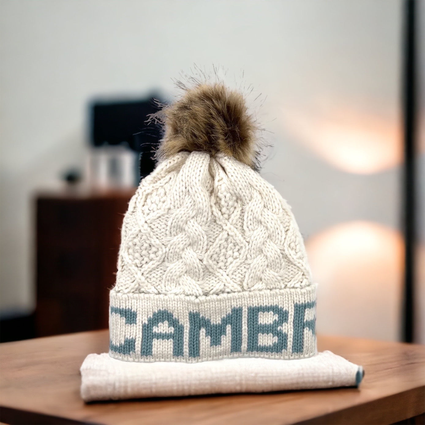 Introducing the Aran Diamond Cable Cambridge Pom Pom Hat - the perfect blend of style, comfort, and national pride! Embrace the traditional Diamond Cable design crafted in a chunky knit, guaranteed to keep you warm and cozy during those chilly days.