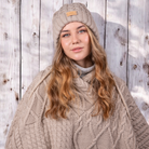 The rib hem ensures a comfortable and flexible fit, accommodating different head sizes. With the pale tan leather brand logo hand-stitched on the front hem rib, this hat showcases attention to detail and authenticity. Stay fashion-forward and cozy all winter long with this classic Aran cable tammy hat.