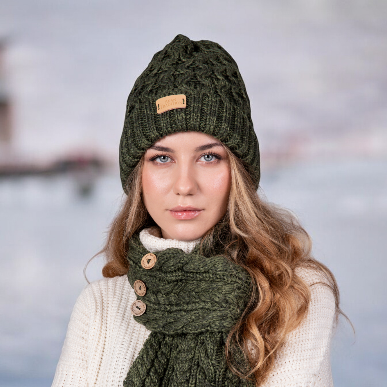 Elevate your winter style with our Aran Cable Knit Beanie Hat. Crafted by Aran Traditions, this hat features a chunky cable knit design inspired by traditional Aran patterns. The honeycomb cable design adds a touch of timeless charm to the soft and cozy 3GG knit.