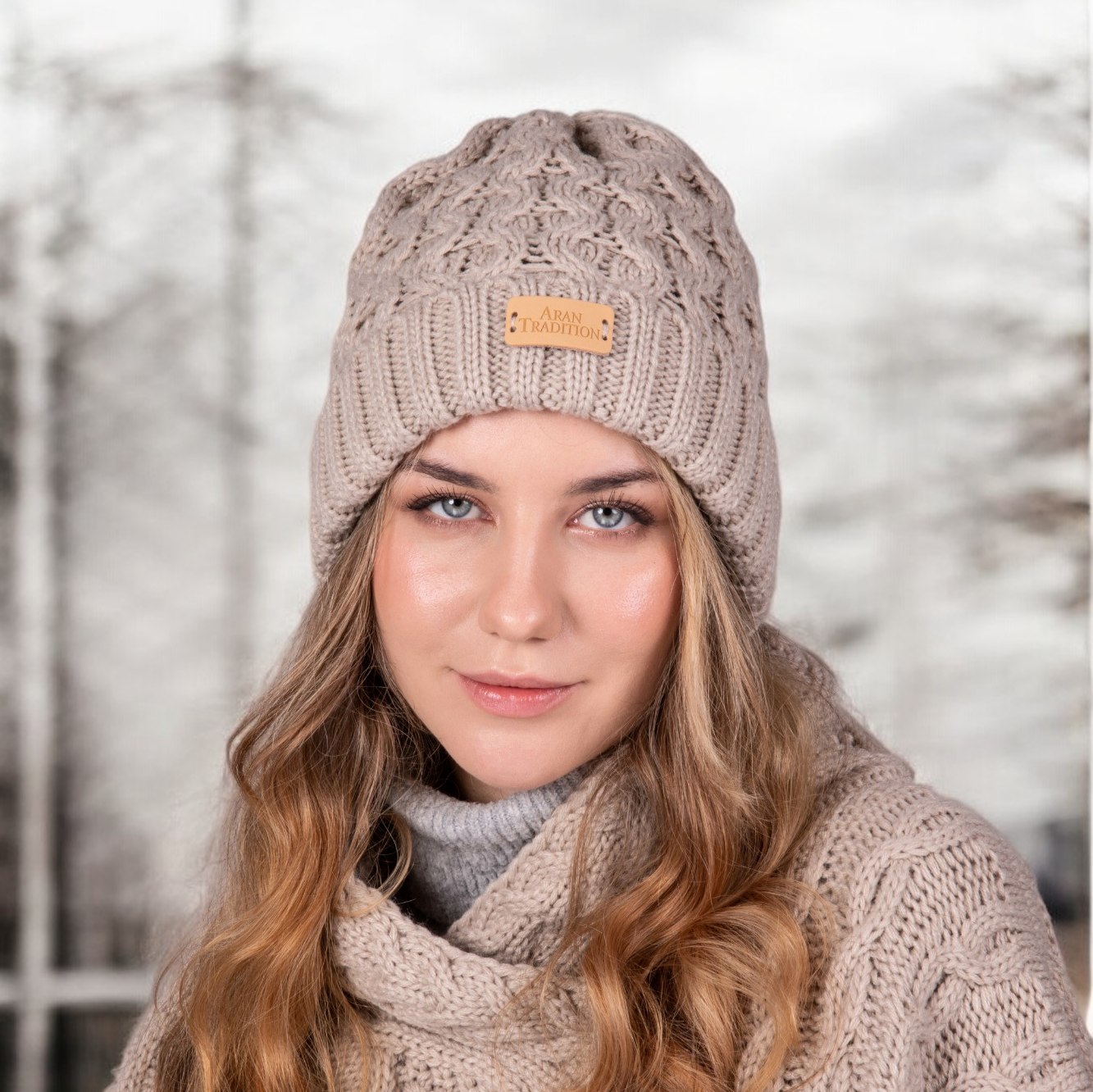 Elevate your winter style with our Aran Cable Knit Beanie Hat. Crafted by Aran Traditions, this hat features a chunky cable knit design inspired by traditional Aran patterns. The honeycomb cable design adds a touch of timeless charm to the soft and cozy 3GG knit.